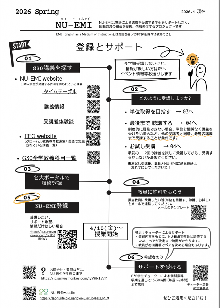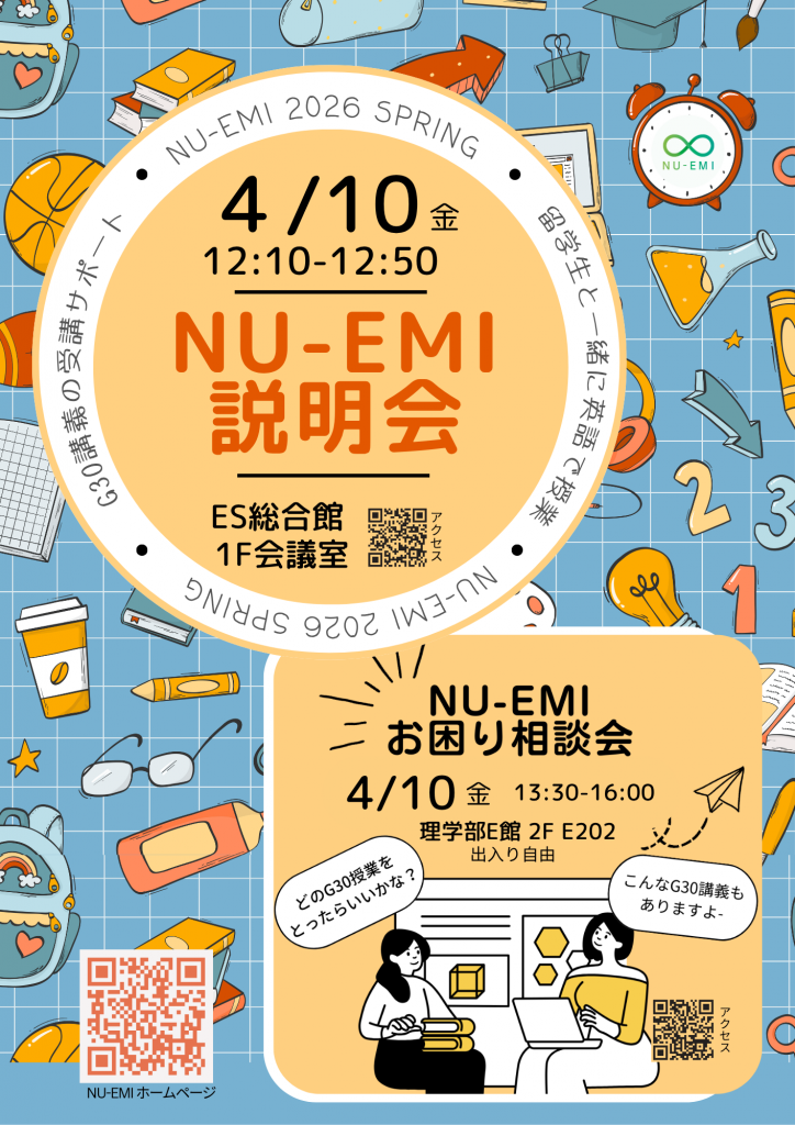 いよいよ春学期が始まりますね。NU-EMIでも準備を始めています。